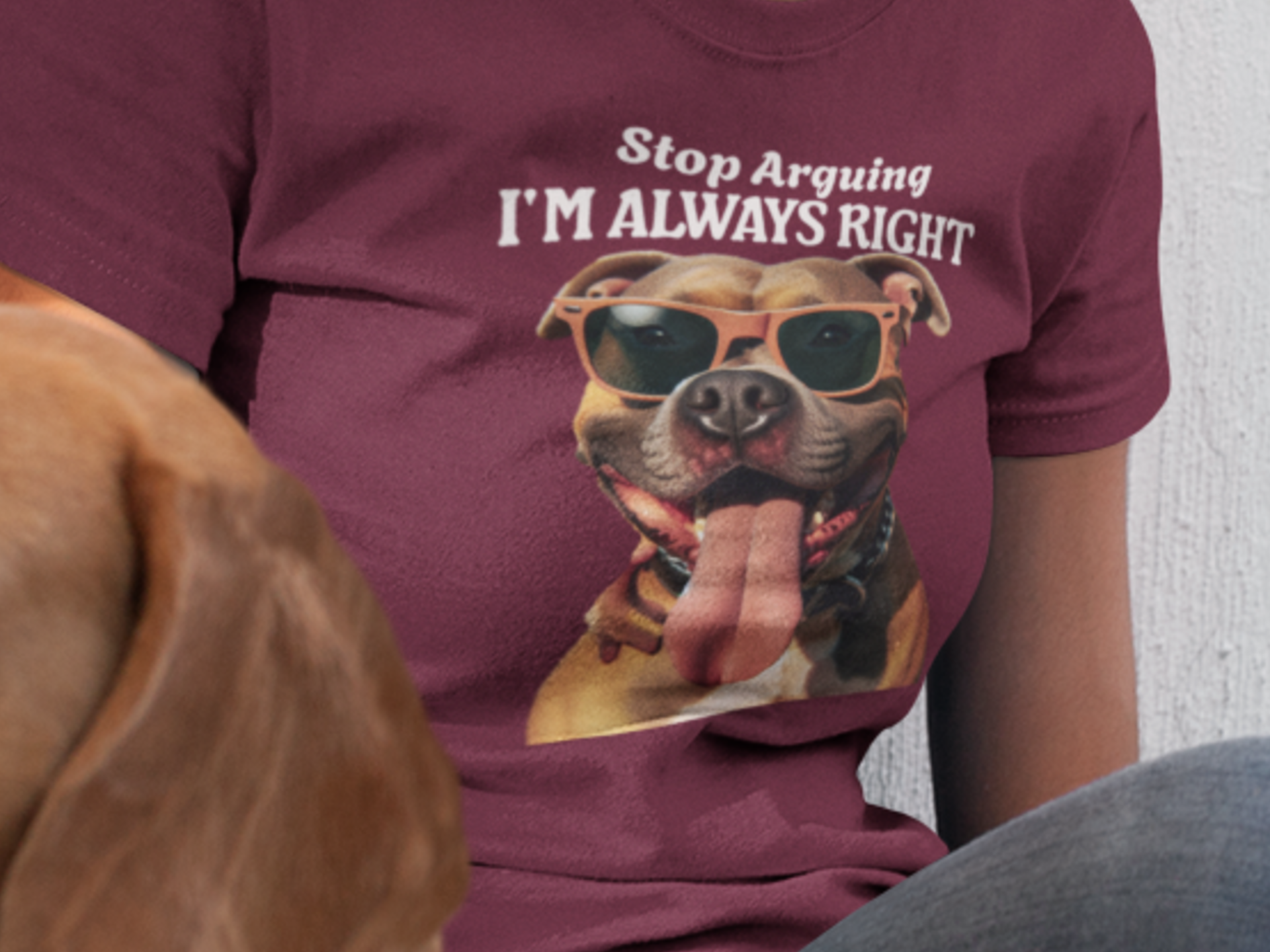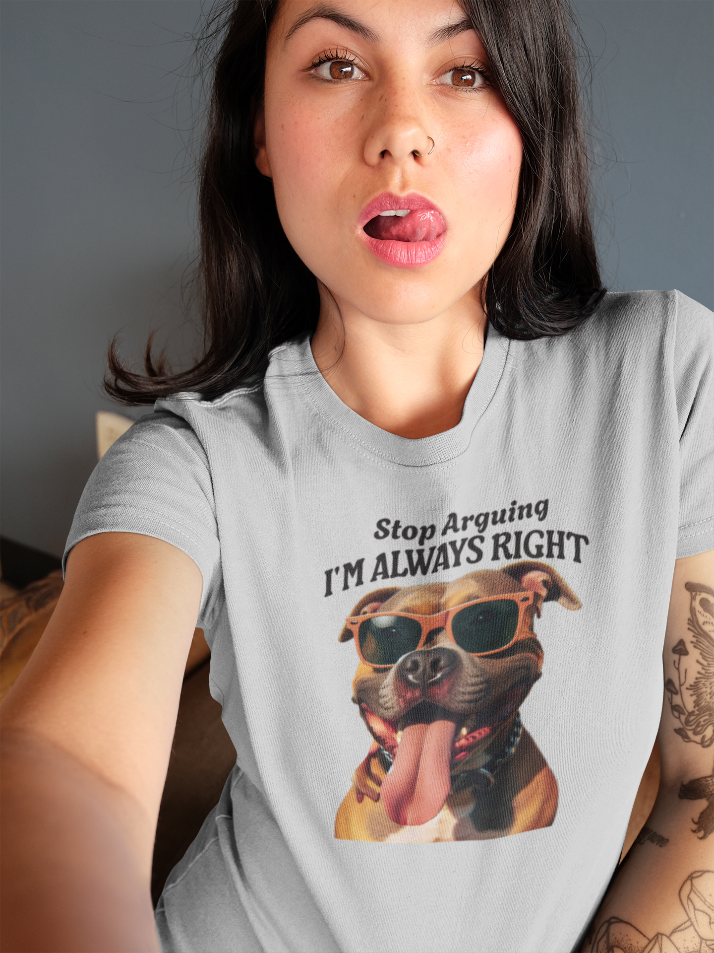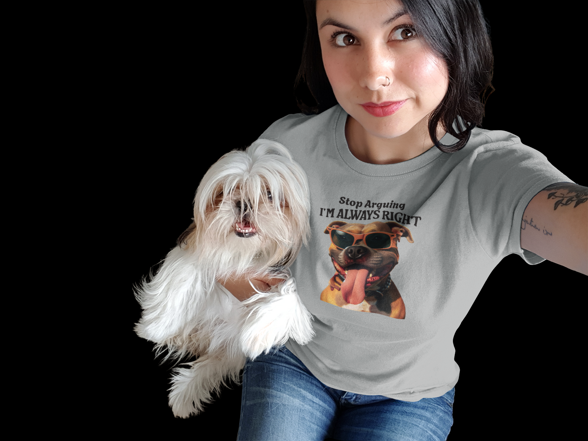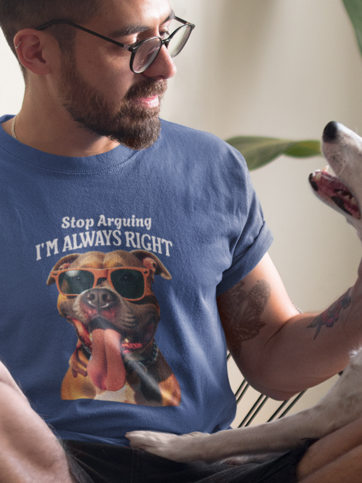Fun Dog T-Shirt, I'm Always Right Tee, Dog Lover Gift, Pet Owner Apparel, Funny Quote Shirt, Casual Wear.